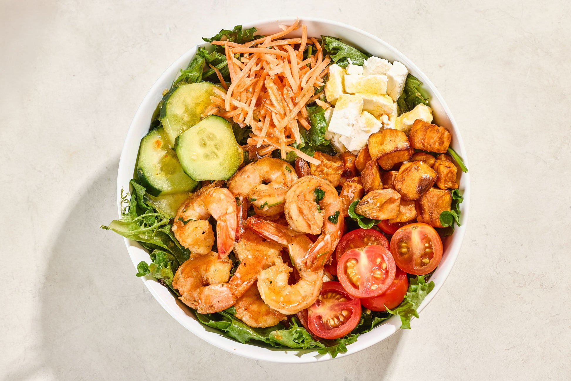Salmón, arroz basmati y ensalada de ruedas (lechuga, papa, huevo y remolacha)